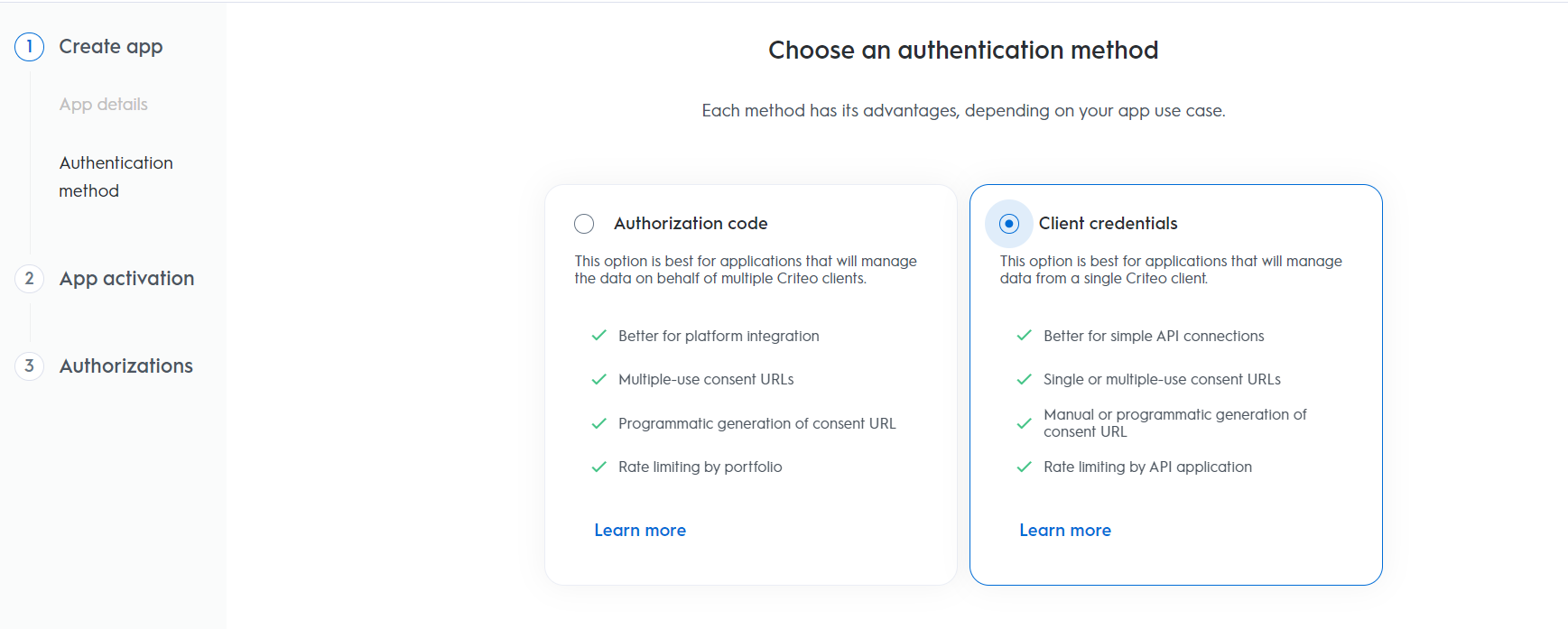 Choose the Criteo service your API application will interact with: