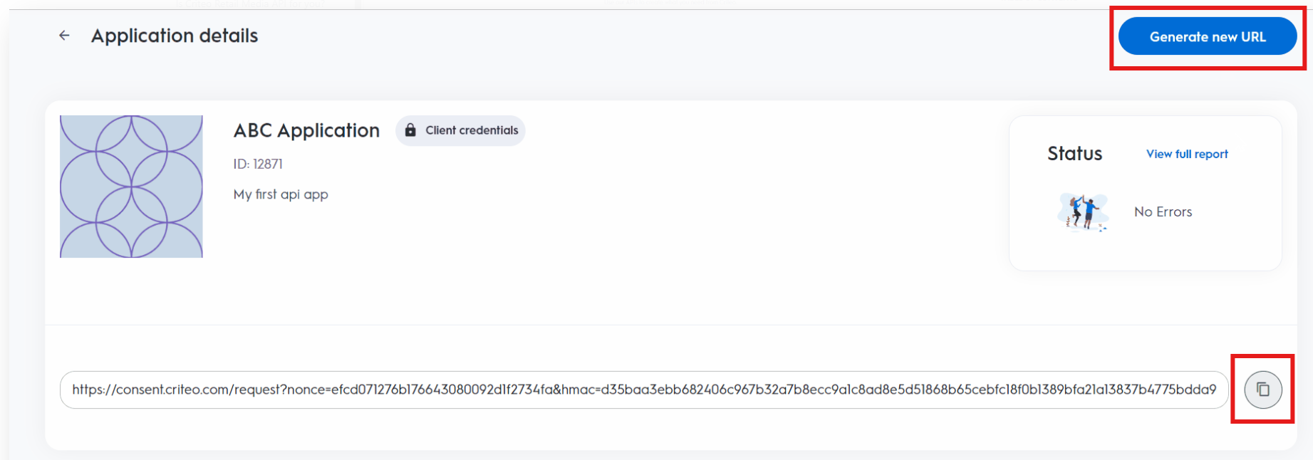 With the consent URL, the user will be redirected to the Criteo's consent portal to approve API application access.