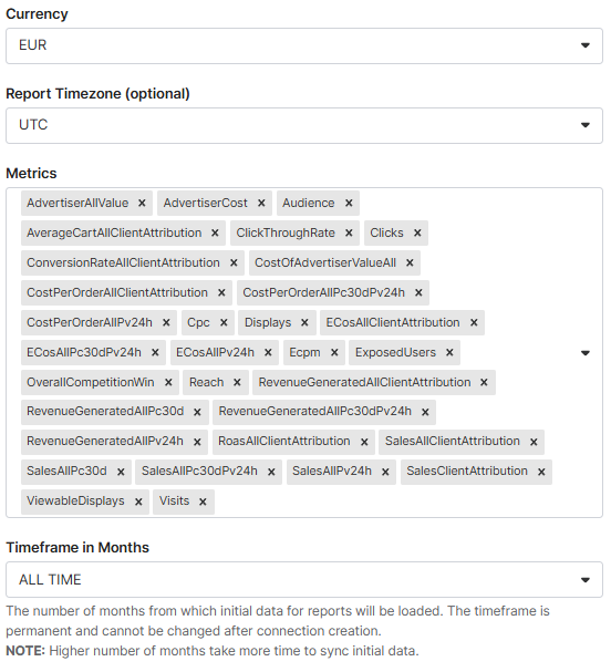 Criteo is connected and data is fetched automatically with correct MMM schema to Sellforte.