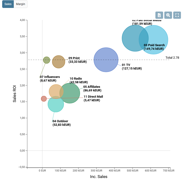 This use-case covers the most fundamental question for the marketing function: What is marketing's role in driving company's business performance? How much is the company getting back for each euro/dollar invested in marketing? As such, this use-case is highly interesting for the C-level stakeholders, including CMO, CFO, while of course being relevant for the whole marketing team.
