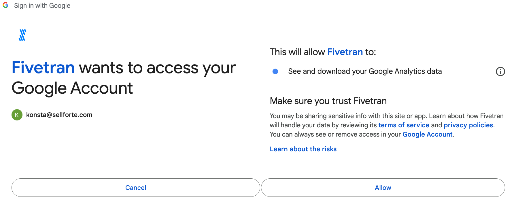 Giving access don't share your credentials or any other sensitive information. You will just allow Sellforte to fetch data from the source.