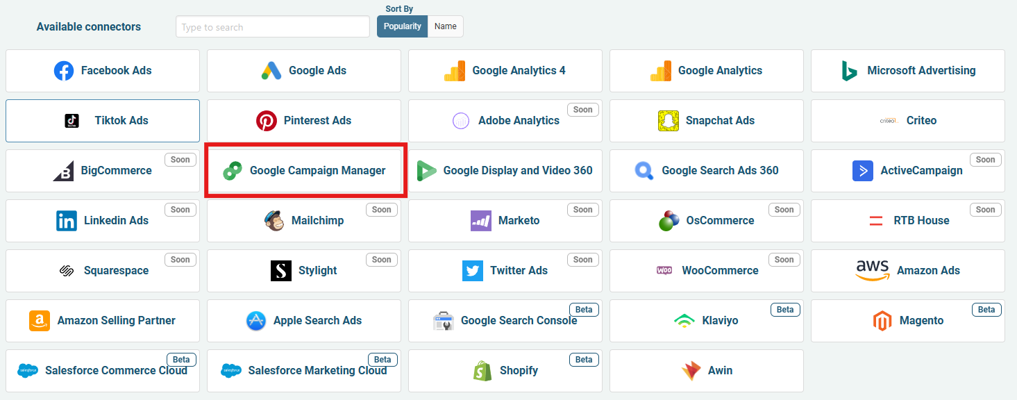 Google Campaign Manager 360 is connected and data is fetched automatically with correct MMM schema to Sellforte.
