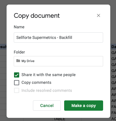 2. Add "Backfill" to the filename to indicate it's the backfill file, click "Share it with the same people" and then "Make a copy"