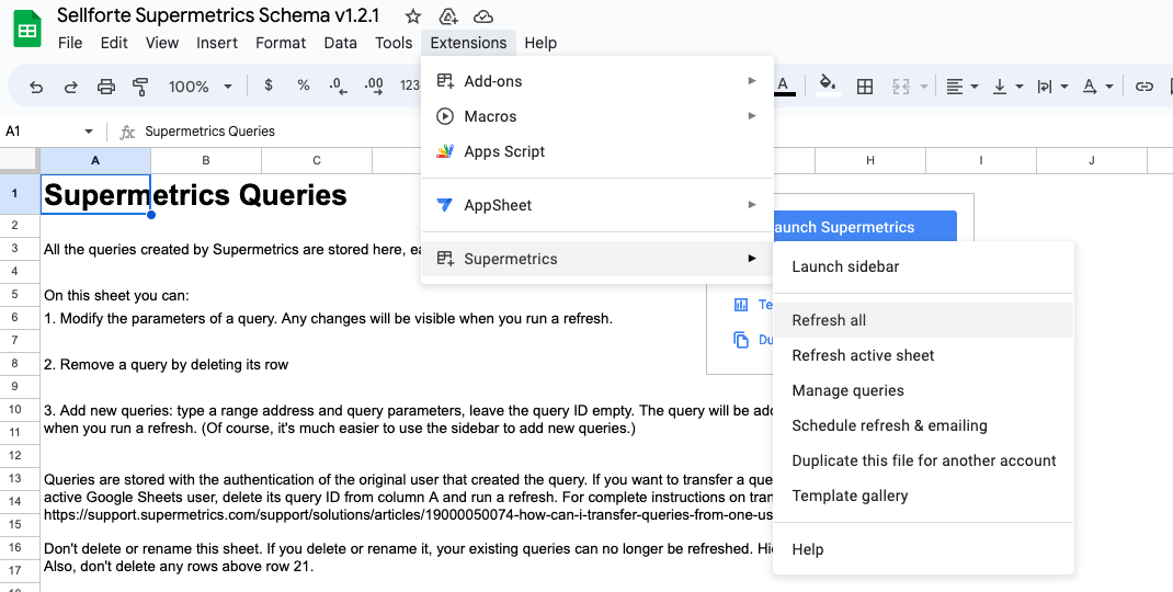 This authenticates the queries with your Supermetrics license. This is needed so that your Sellforte contact(s) can work on the sheet and process the backfill.