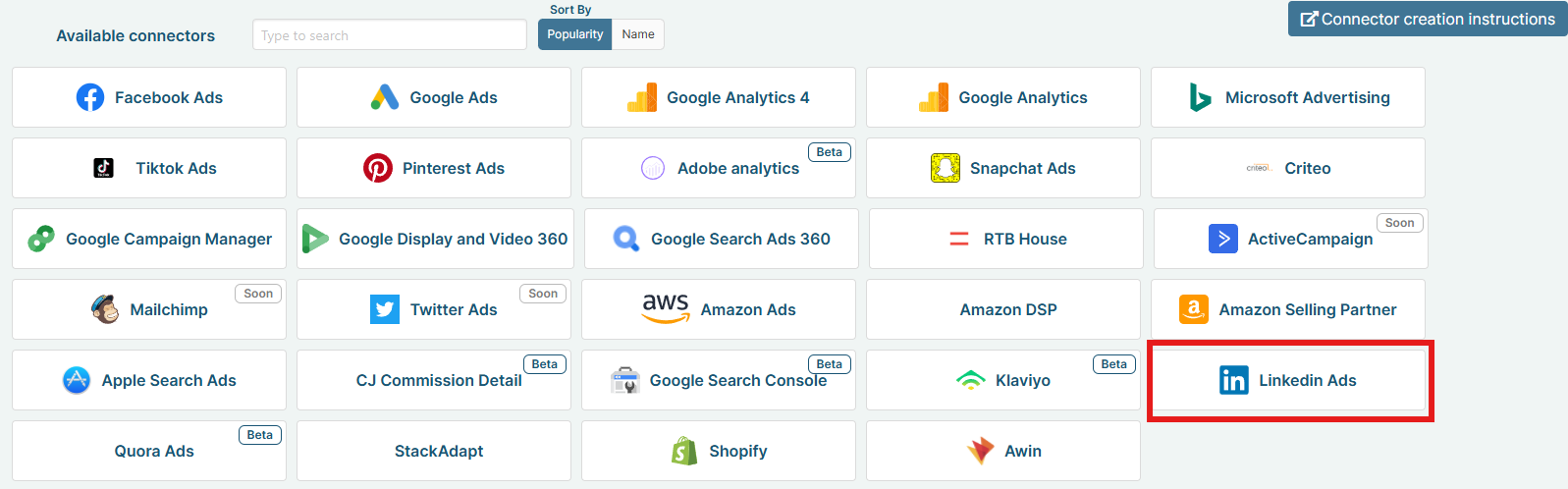 LinkedIn Ads is connected and data is fetched automatically with correct MMM schema to Sellforte.