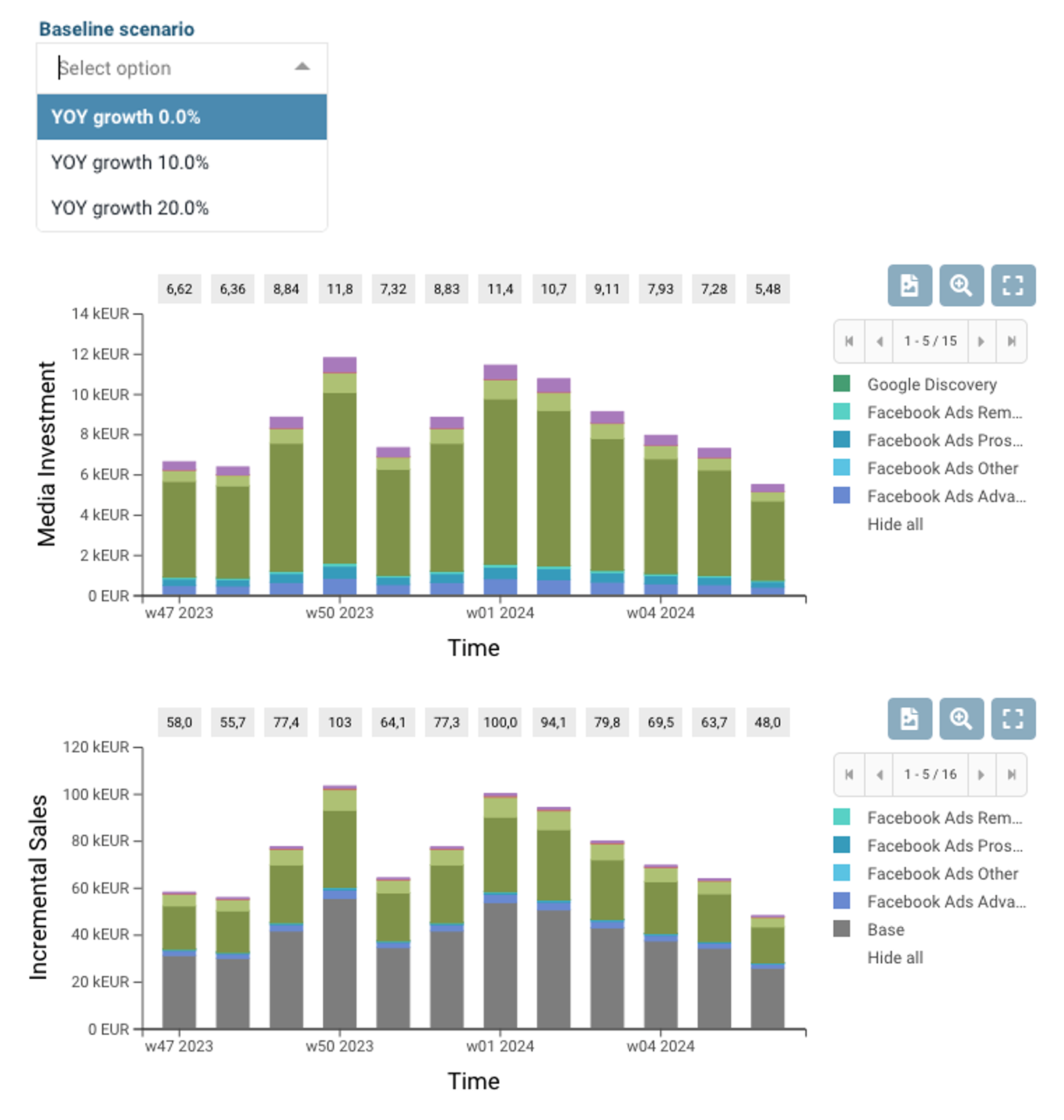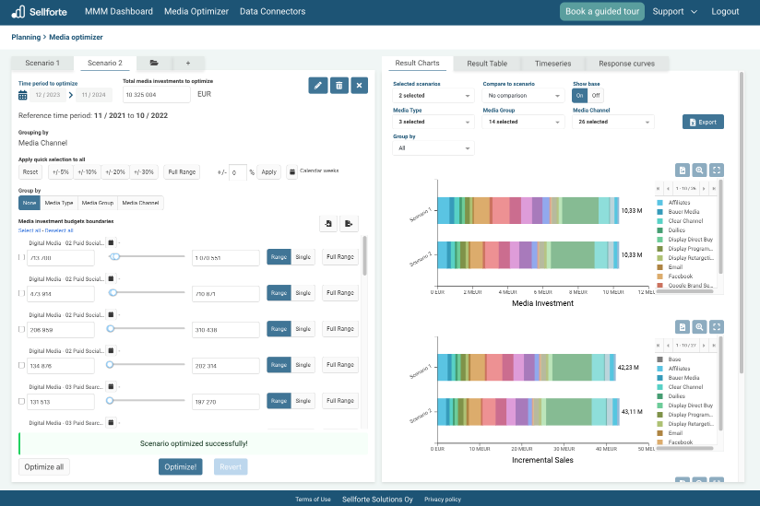 Users can choose different baseline scenarios for different Optimizer scenarios to find out how budget allocations would change if e.g. business growth is slower or faster than expected.