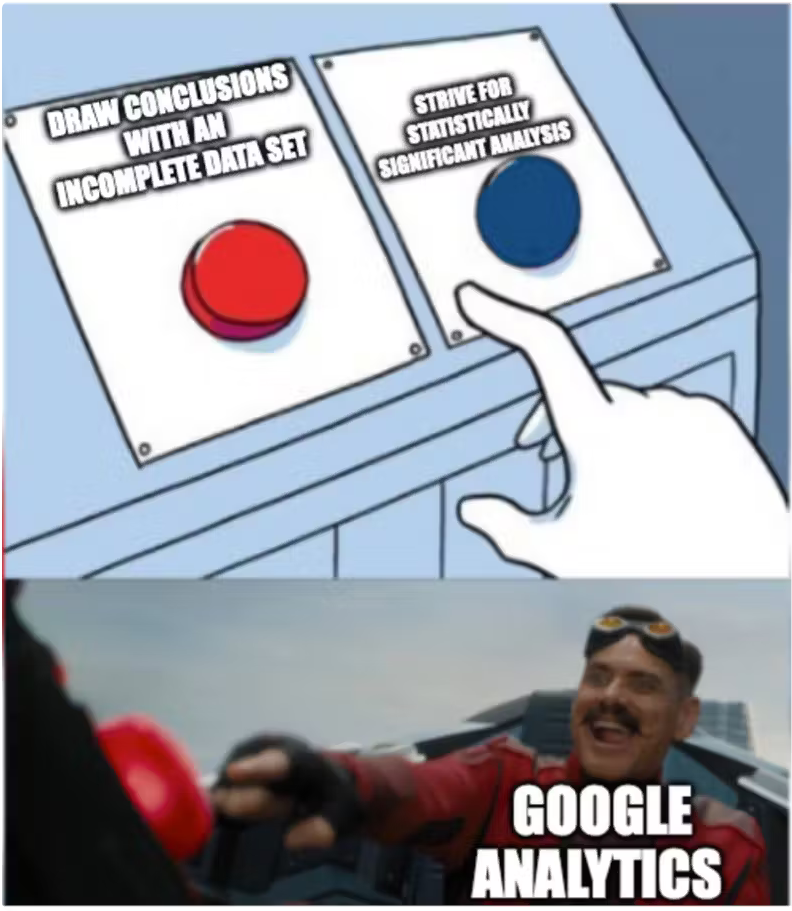 Due to the latest privacy regulations and the gaps in the input data, GA(4) relies on machine learning data sampling to make up for the data loss. Again, sounds very cool and futuristic, but in practice, GA can extrapolate the results after a data cap of 500K website visits. This means if you would collect 5 million page views, the data for the remaining 4,5M views is an assumption based on the 500K sample. Not very cool and futuristic after all.