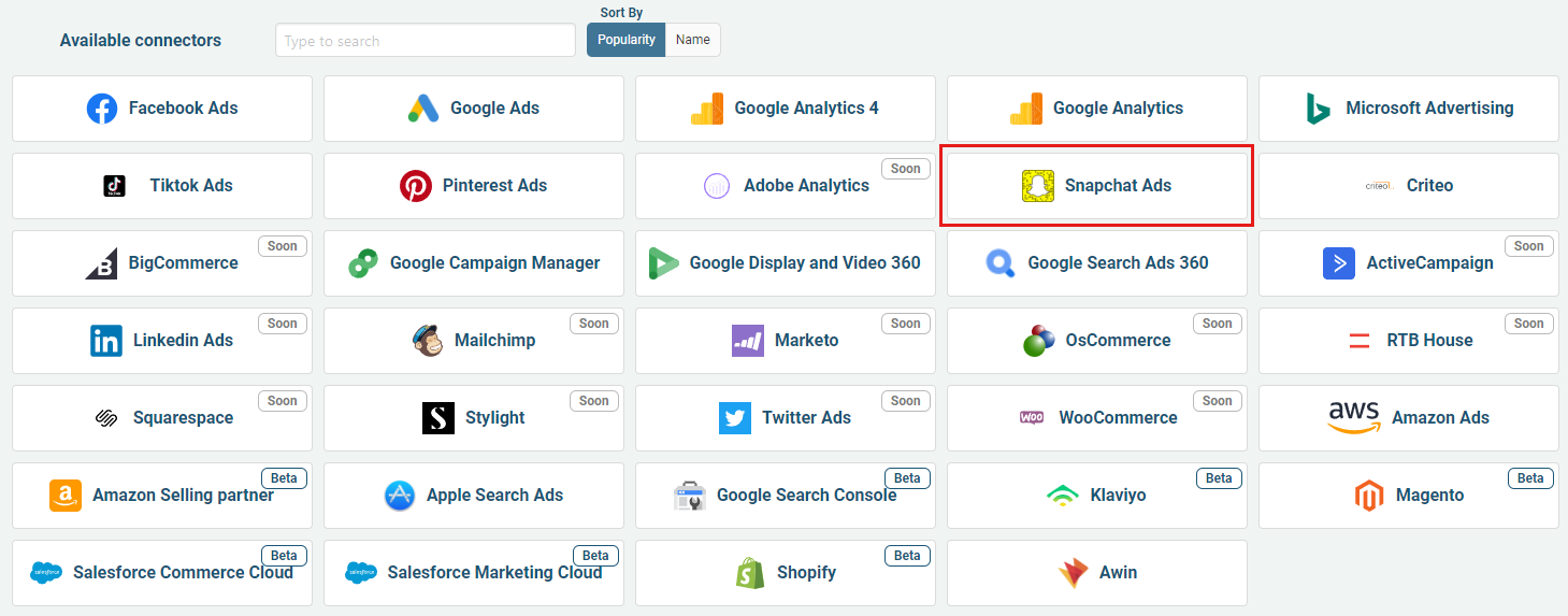 Snapchat Ads is connected and data is fetched automatically with correct MMM schema to Sellforte.