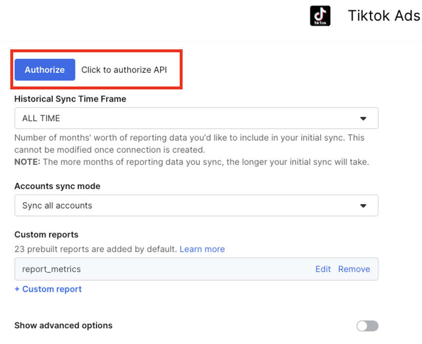 First, click "Authorize" and run through the authentication process in TikTok's connection flow.